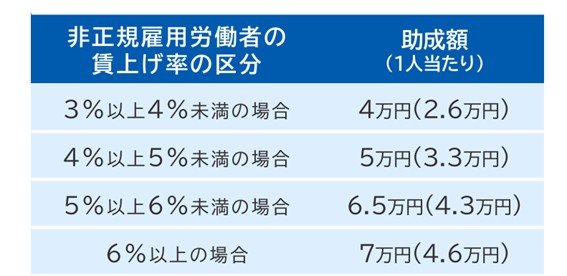 キャリアアップ助成金の賃金規定等改定コースの場合、有期雇用労働者等の基本給を定めた賃金規定等を3%以上増額改定し、適用した事業主に対して1人あたり下記の額の助成を行います。