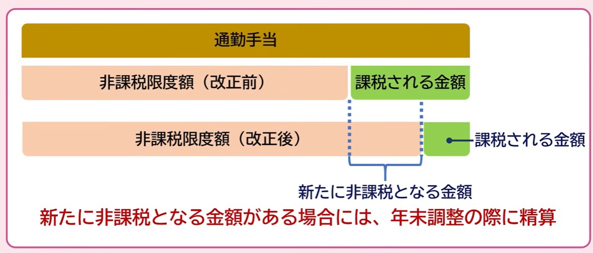 4月以降、今回の改正前の非課税限度額を超えた通勤手当を支払っていた場合には、令和7年分の年末調整で対応が必要となる場合があります。
