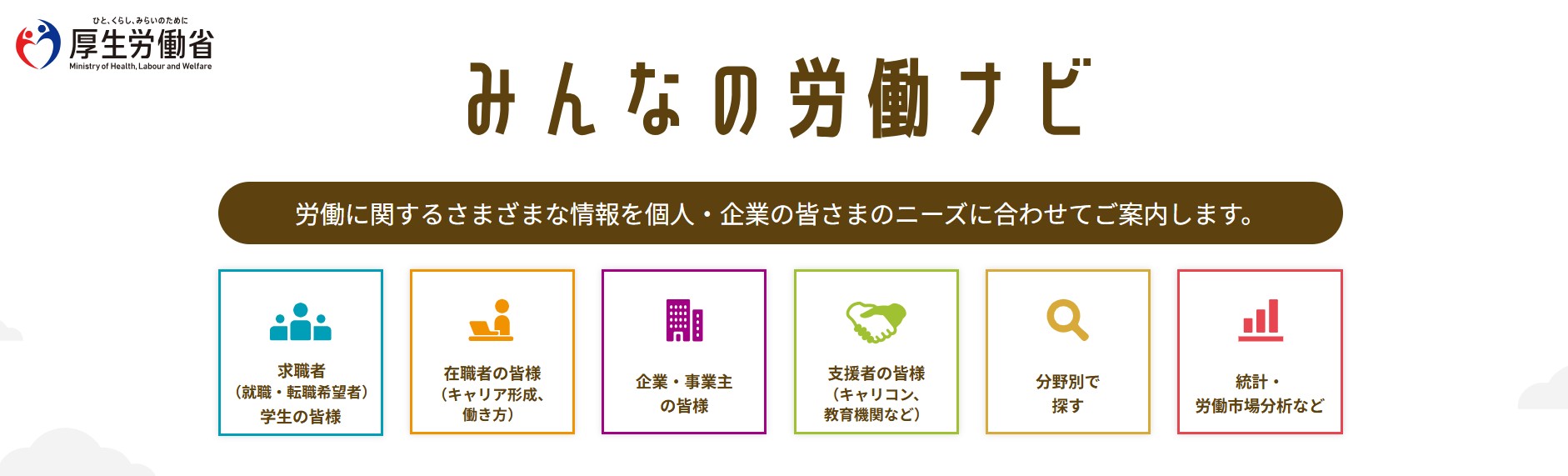 これまで各サイトに分散していた「はたらく」に関する情報が「みんなの労働ナビ」に集約され、各種情報にアクセスしやすくなりました。
