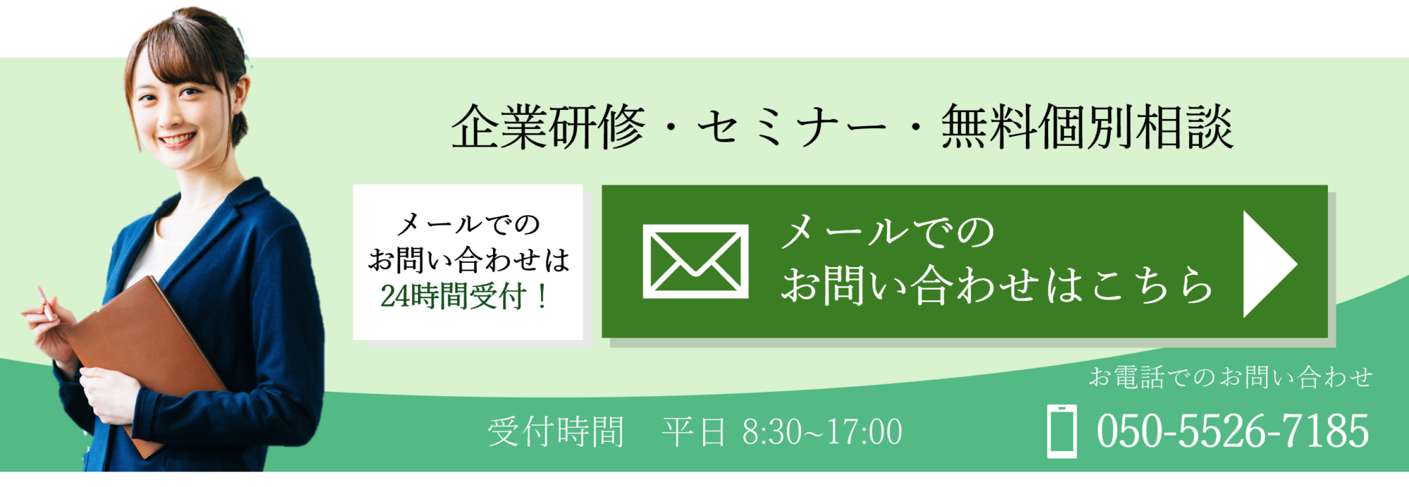 当事務所の労務相談顧問は、「迅速なレスポンス」、「杓子定規ではない寄り添った回答」が特徴で、法改正内容や対応事項のような基本的なところから労使間のトラブルの対応方法、問題社員への対応方法等多くの相談に対応しております。
